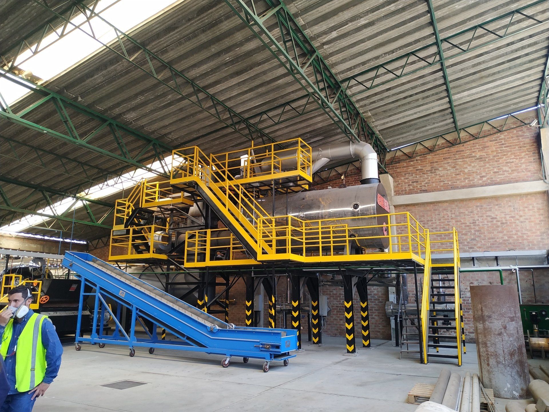 En un proceso único en Colombia mediante una turbina es posibles convertir el vapor en electricidad para alimentar nuestras platas y flota de vehículos haciendo sustentable el proceso de tratamiento de residuos.